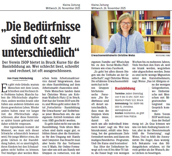 „Die Bedürfnisse sind oft sehr unterschiedlich“ – Artikel in der Kleinen Zeitung