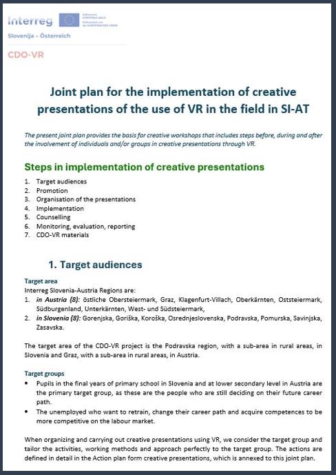 Joint plan for the implementation of creative presentations of the use of VR in the field in SI-AT
